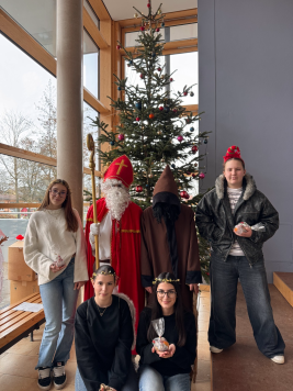 Wie in jedem Jahr besuchte der Nikolaus die Klassen. Nachdem ein Gedicht verlesen wurde, verteilte der Krampus mit seinen Helfern Nikolaustütchen an die Schülerinnen und Schüler!