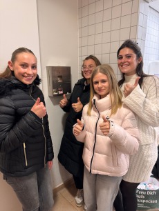 Gemeinsam mit den Schülersprecherinnen Johanna Draxler und Lea Dirscherl sowie Lavinia Stey und Sophia Wonka konnten wir die gesponserten Hygieneartikel abholen. Die Mädchen haben sich maßgeblich für
